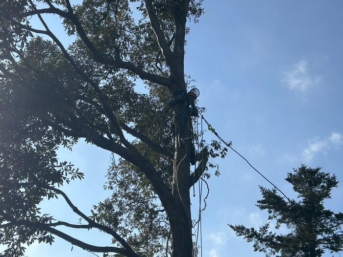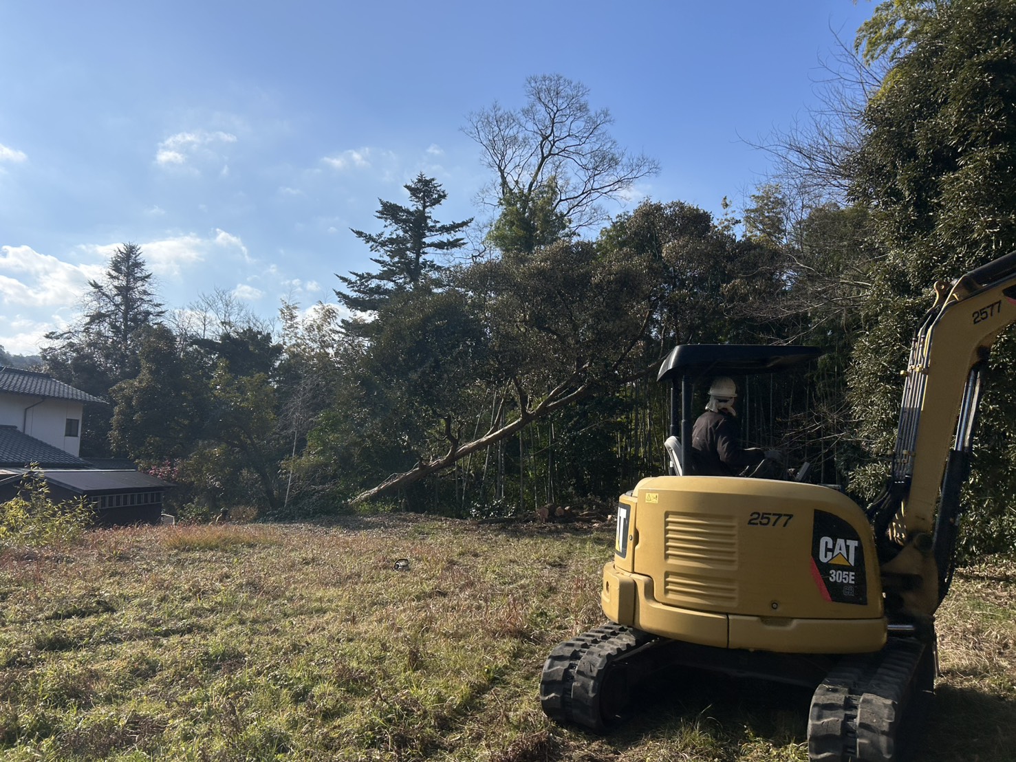 今回の現場は後ろ側に何もない場所でしたので、木を倒す工法にて伐採を行っていきます。