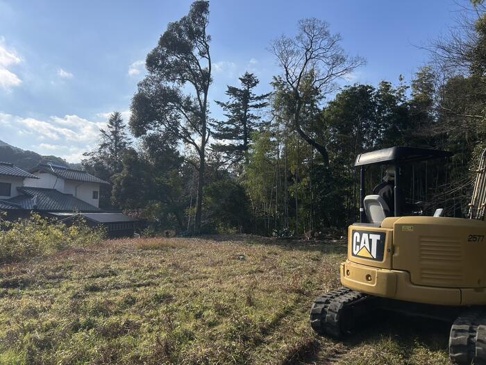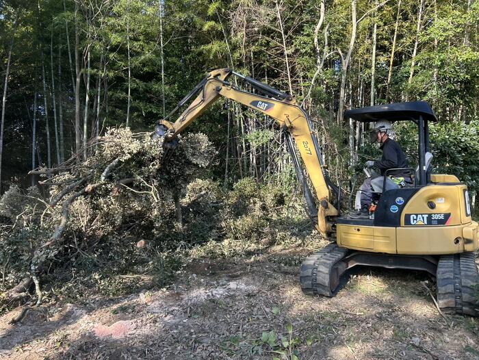 見栄えが悪くないようにバックホウで綺麗に集積して作業完了です。