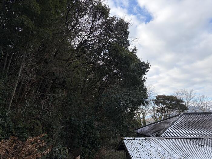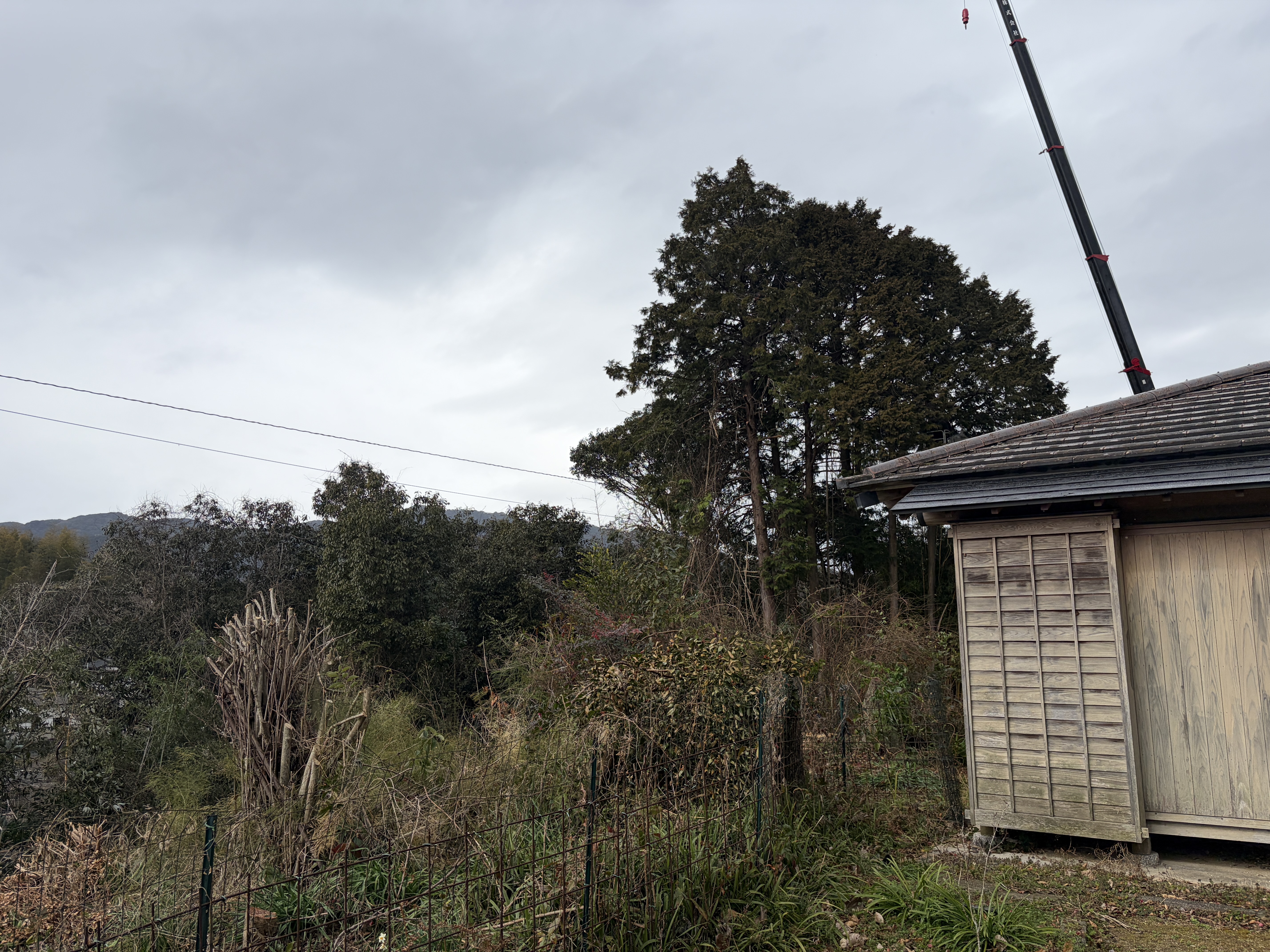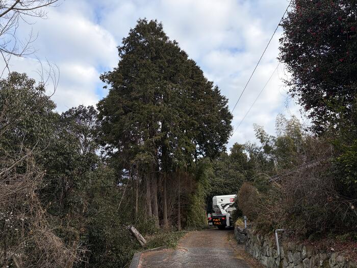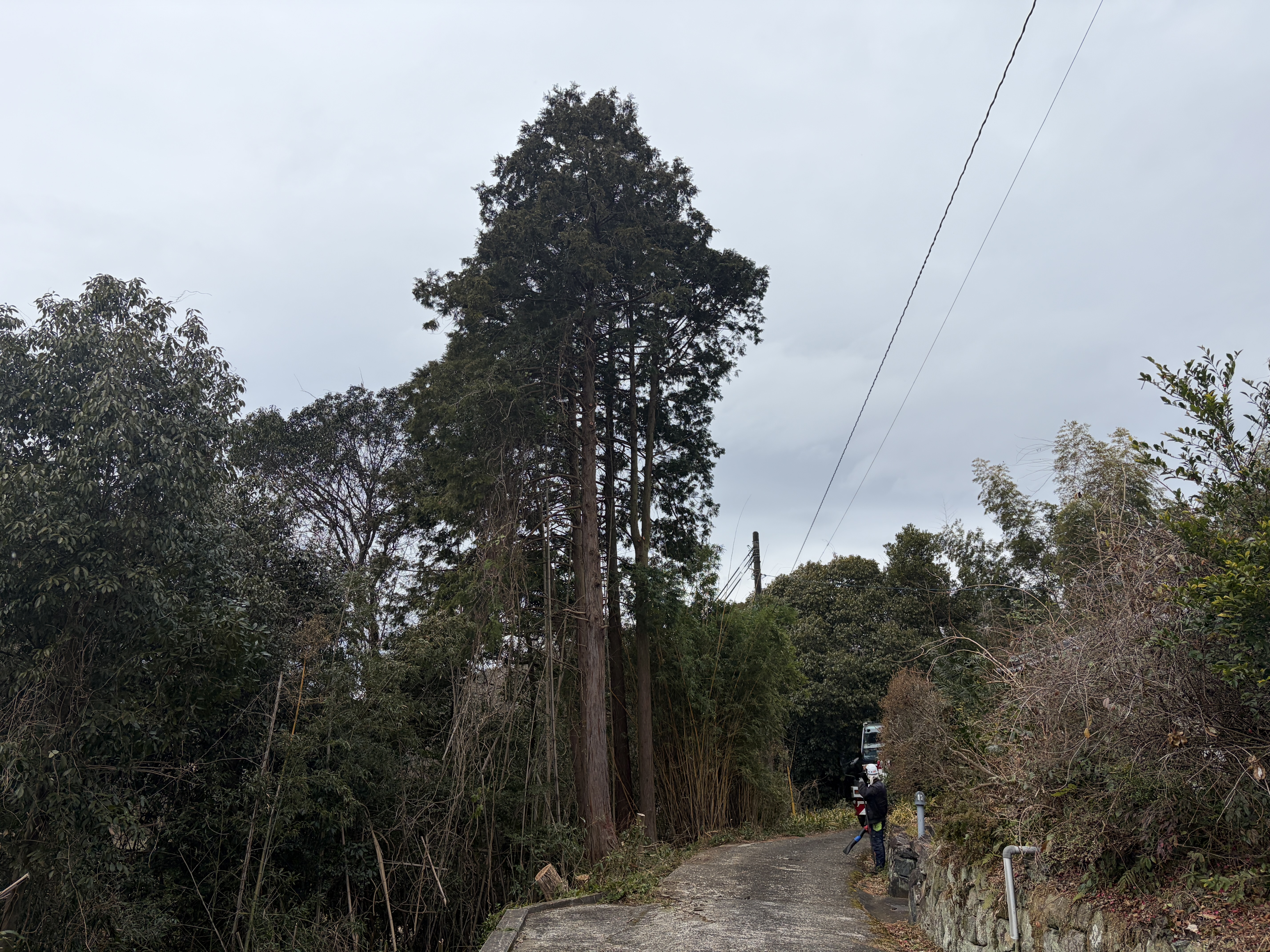 住宅側の枝を切ってほしいとのことでしたが、そのうち3本が枝を切ると枯れてしまう可能性があるため、急遽根元から切るかたちとなりました。