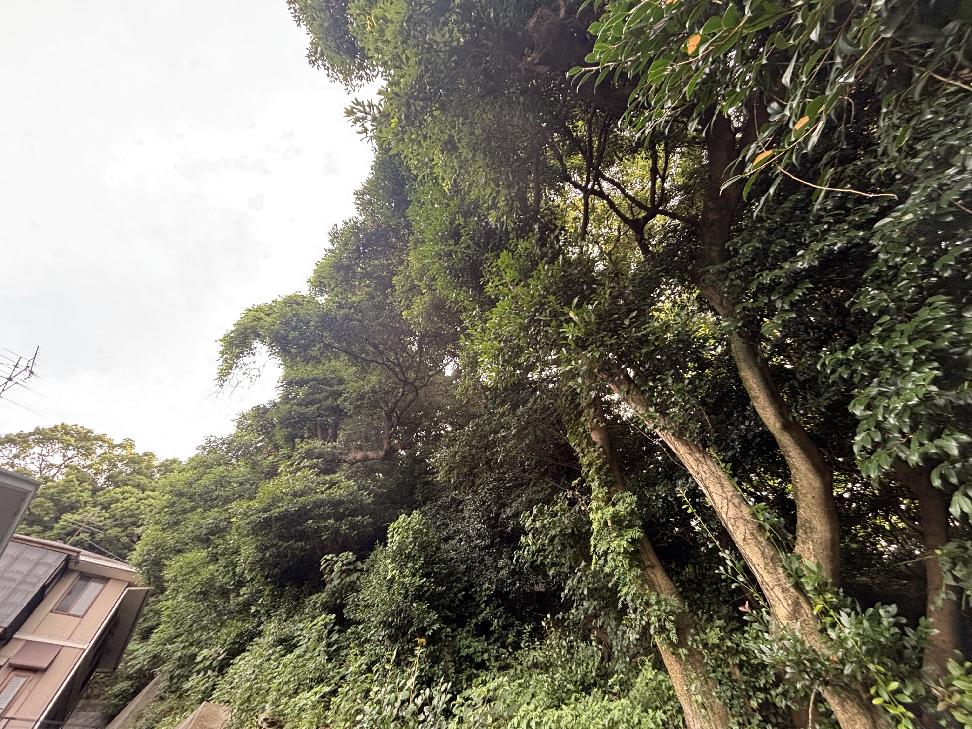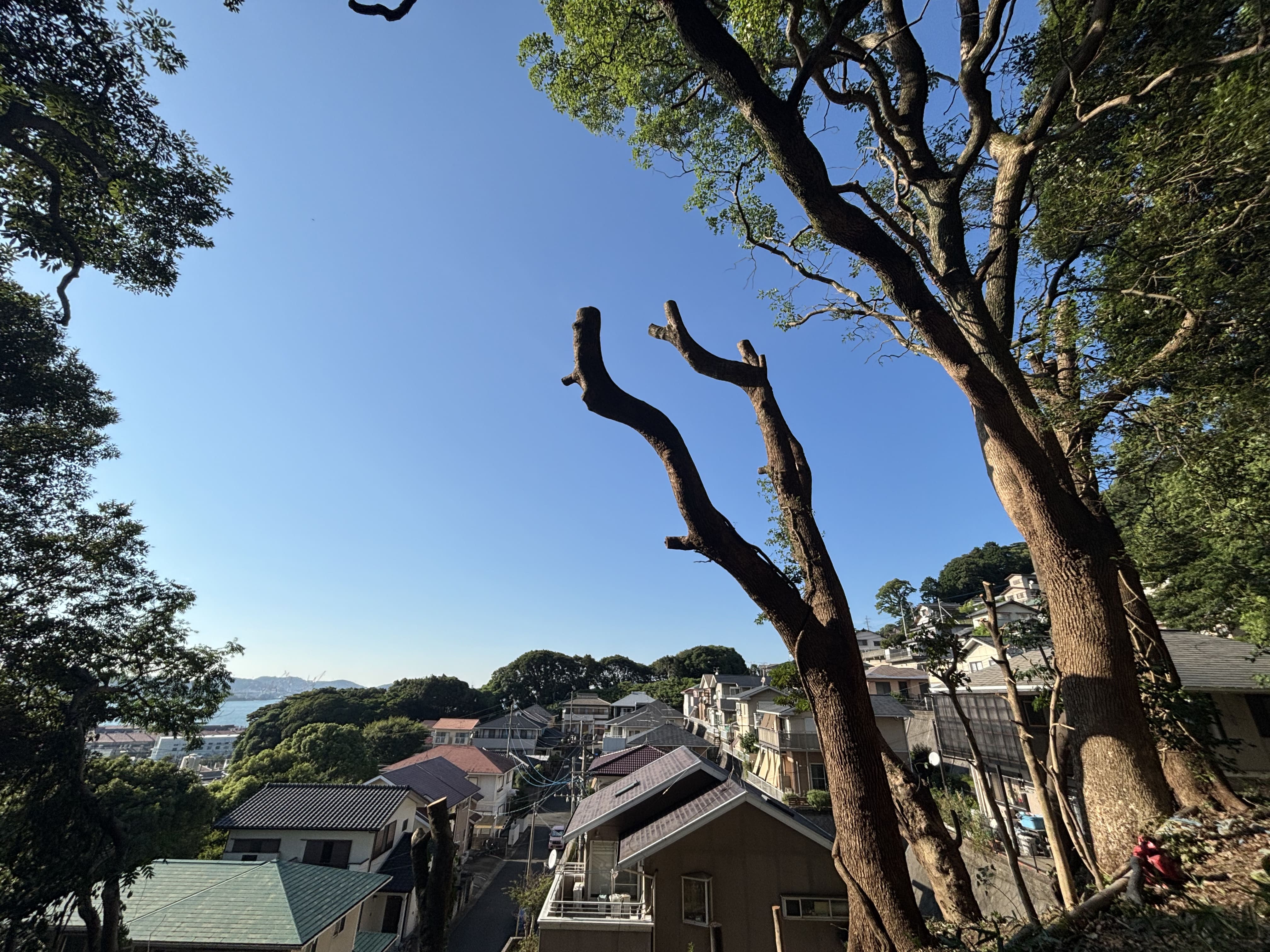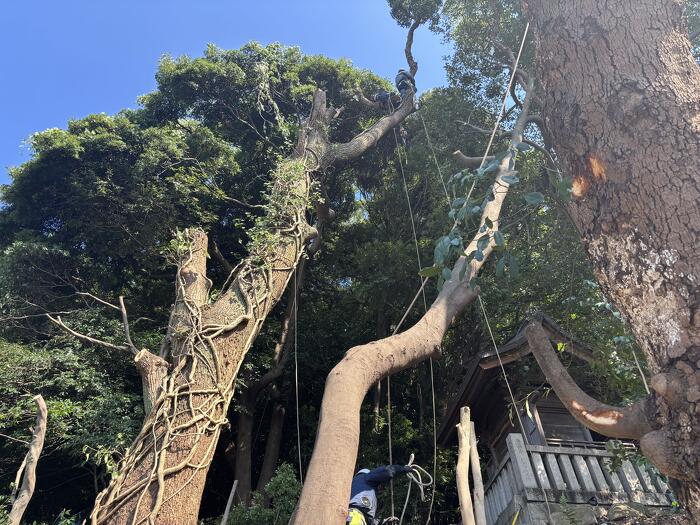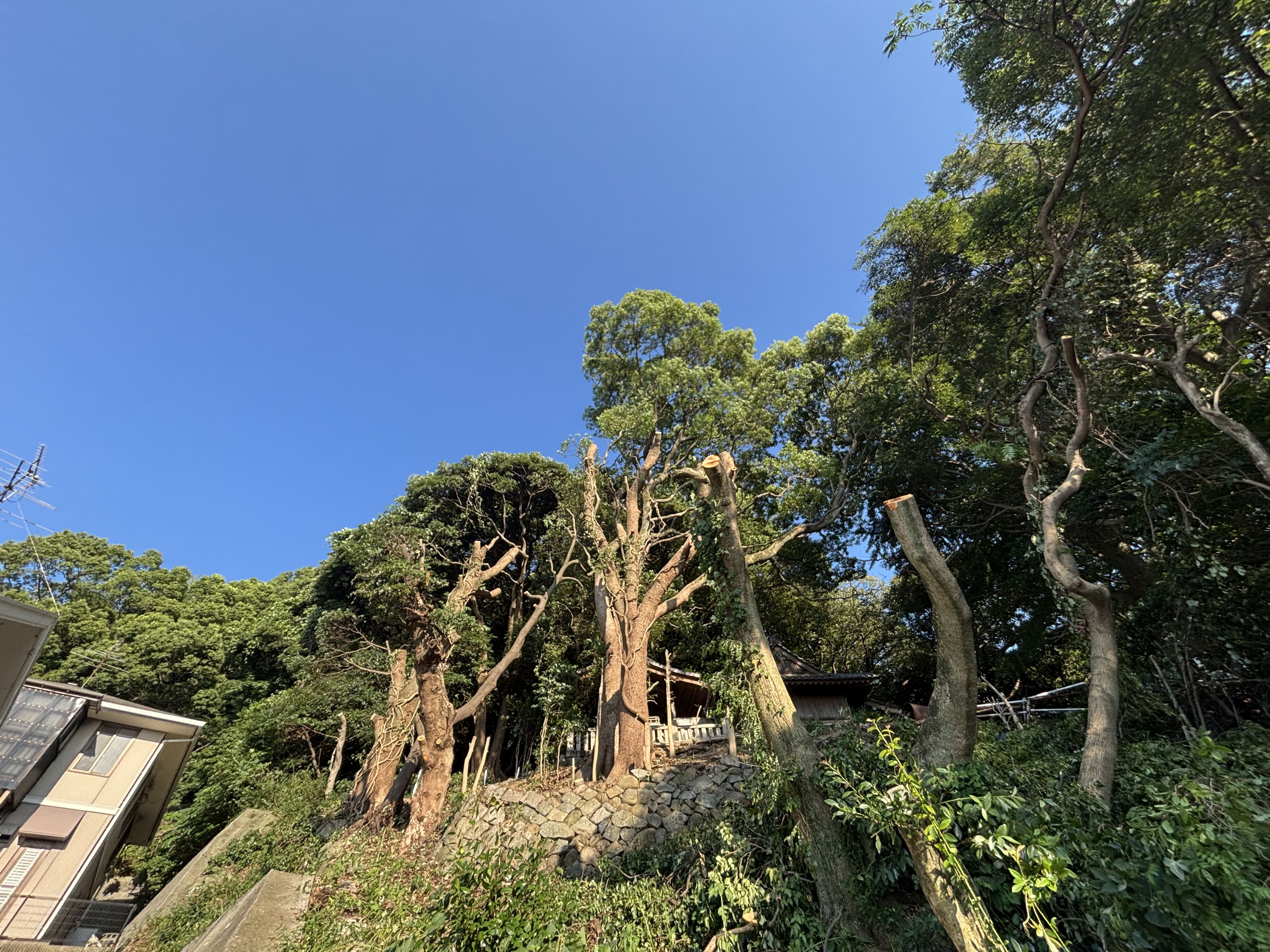 高台にある社の木が下の住宅のご迷惑になるかもしれないので伐採したいとのことでした。