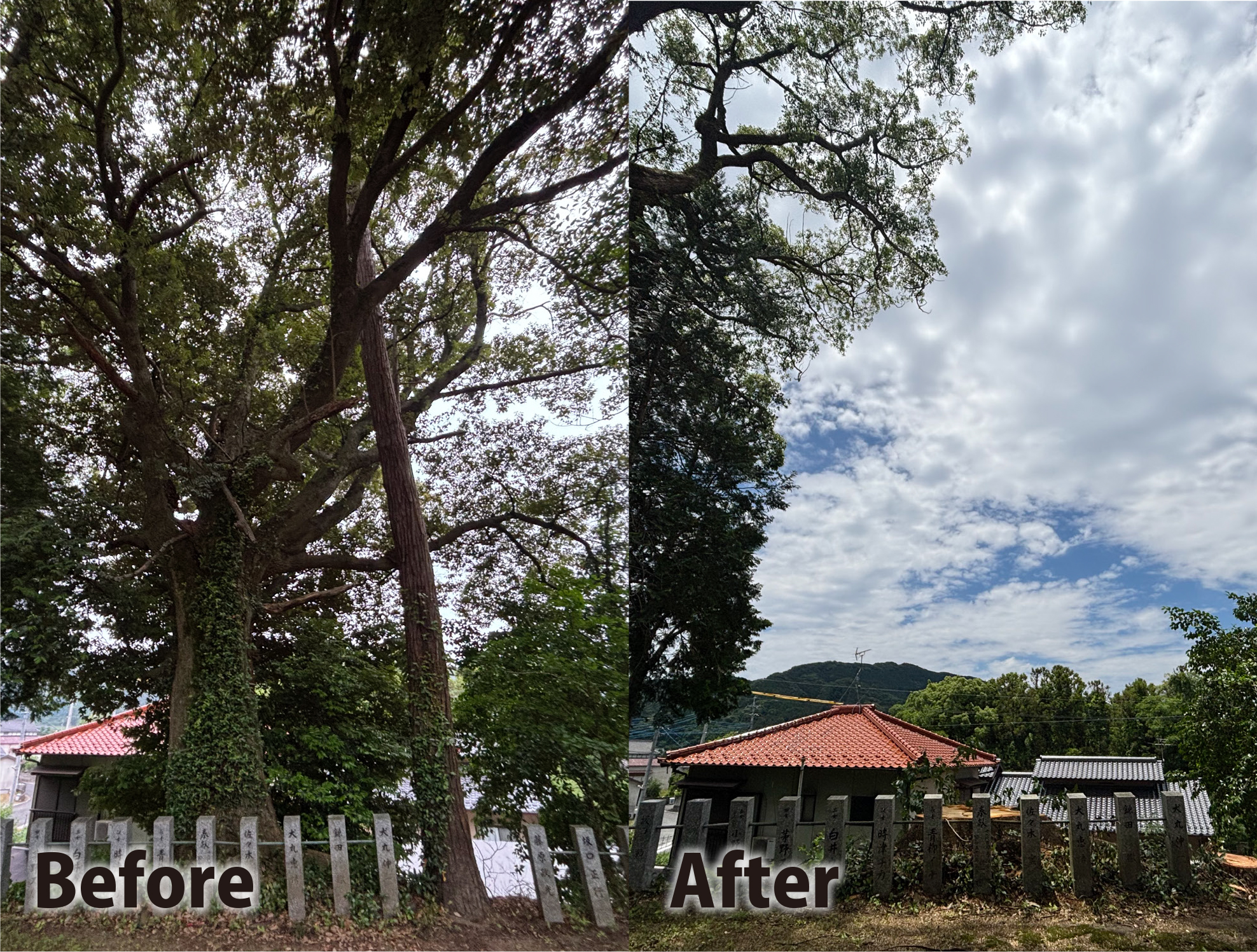 以前こちらの神社で倒木があり、当社が緊急対応させていただきました。