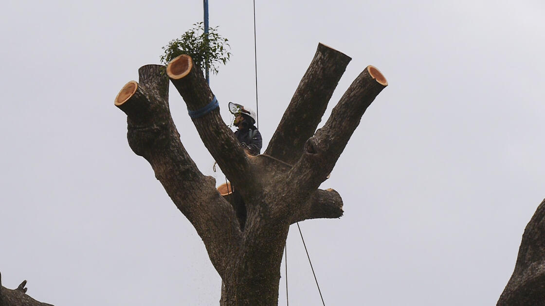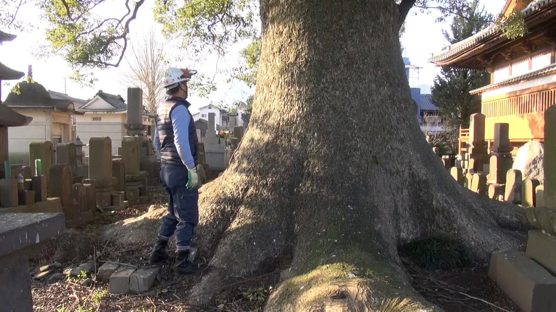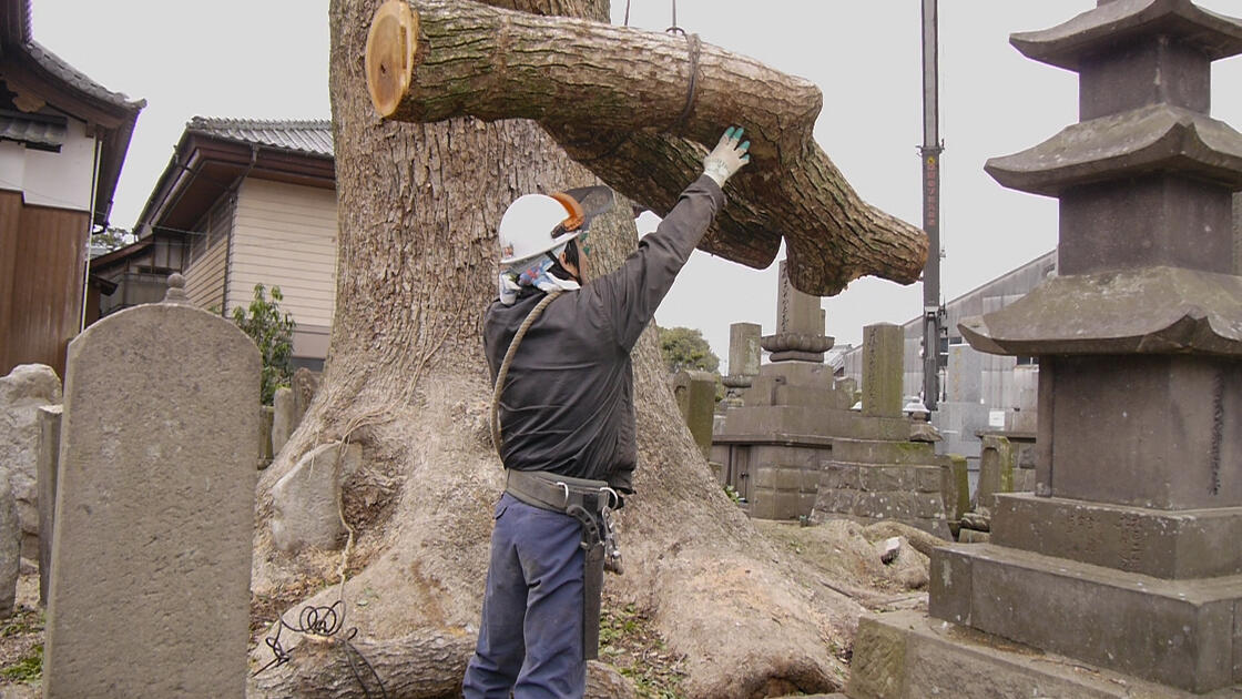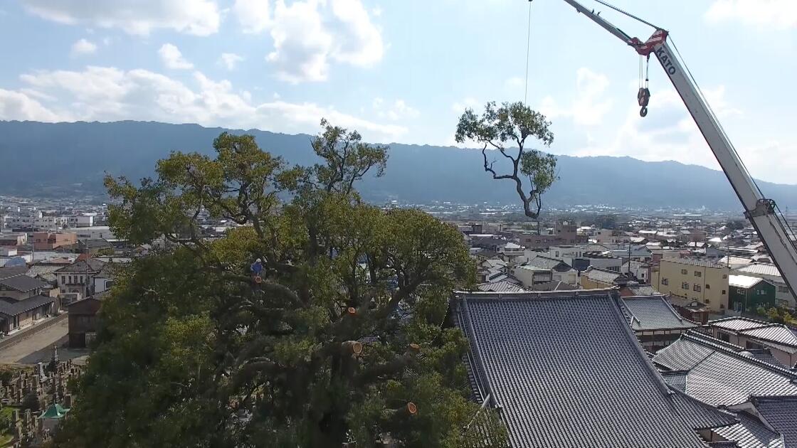 お寺の大クスの伐採