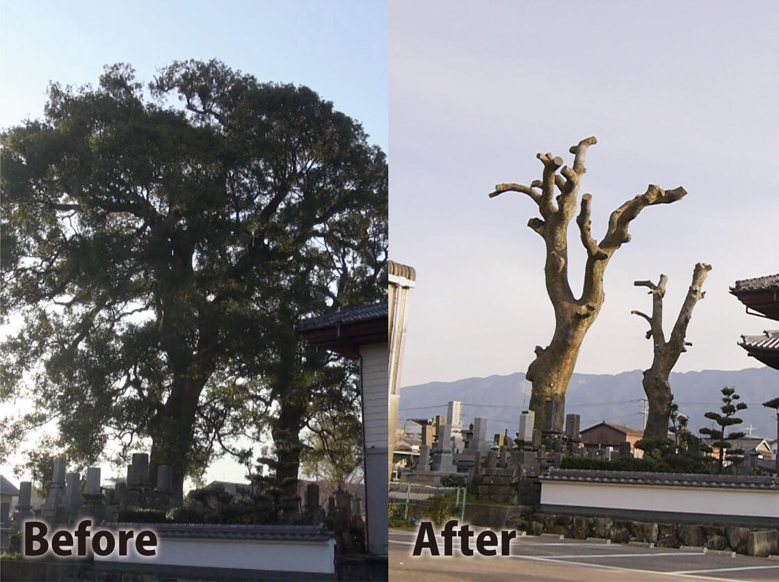 ■お寺の大クスの伐採 ※各画像をクリックで拡大できます。