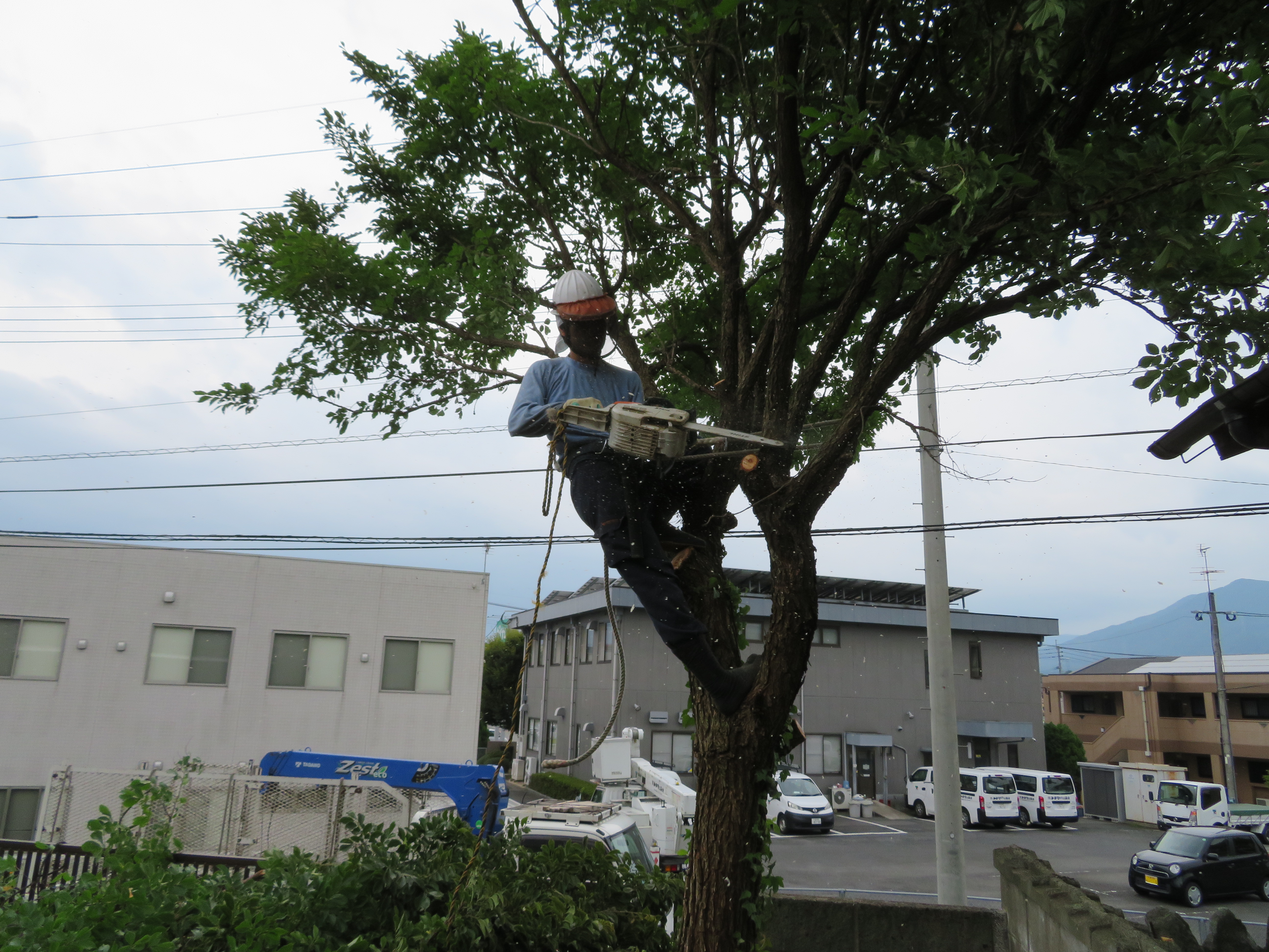 草刈りが終わったら、何本かある雑木を伐採していきます。