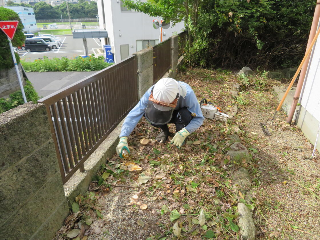最後に木がまた伸びてこないように、木を枯らす薬剤を散布します。