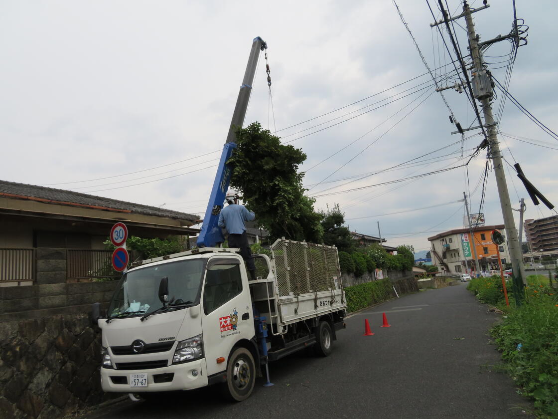 伐採した木や草は荷造りをしてトラックに載せ搬出します。